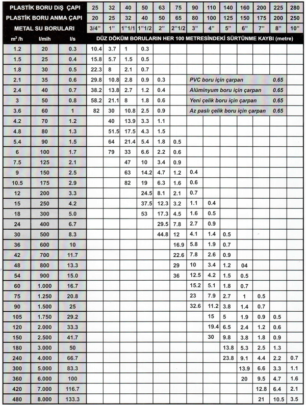 Su Borularında Sürtünme Kaybı Hesap Cetveli